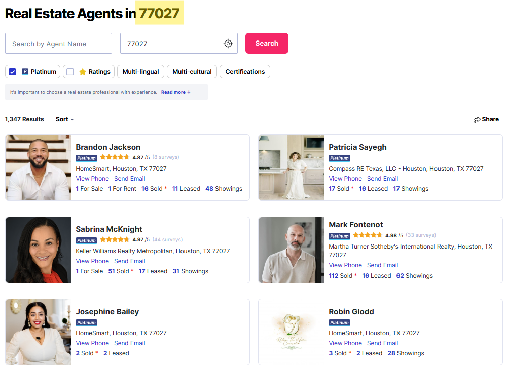 Consumers now begin their real estate journey by searching online; HAR.com is constantly working to find new and innovative ways to attract quality prospects by offering valuable information. As a result, Platinum Agents capture higher quality leads than other sites can offer.