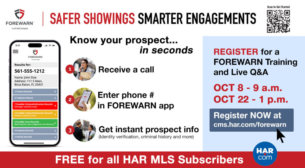 Verifying your prospects in FOREWARN is not only critical for your personal safety and efficiency, but also a benefit to your listing homeowners, providing an added layer of protection for their homes and families.