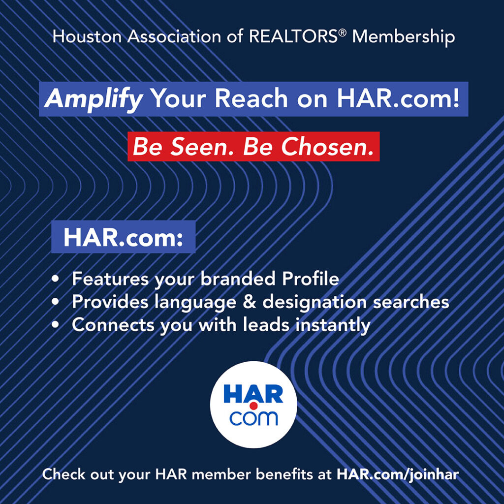 Join the Houston Association of REALTORS® and become a member of HAR, the largest individual membership trade association in Houston and the largest local real estate trade association in the nation, with more than 50,000 real real estate professionals and service providers comprising its membership.