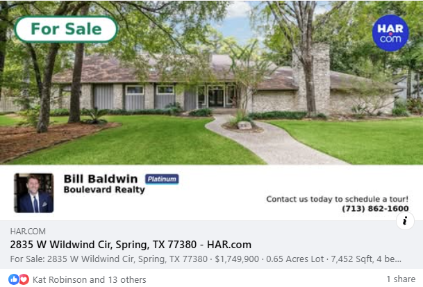 The Social Media Plug-in automatically updates listing activity—such as status or price changes and open houses – on supported social networking sites each night. When a member adds a new listing, reduces the price, schedules an open house, or closes a sale in MLS, the member’s connected social media accounts are updated automatically based on MLS data. The Social Plugins for MLS help members save time while driving consumers directly back to their listings on HAR.com.